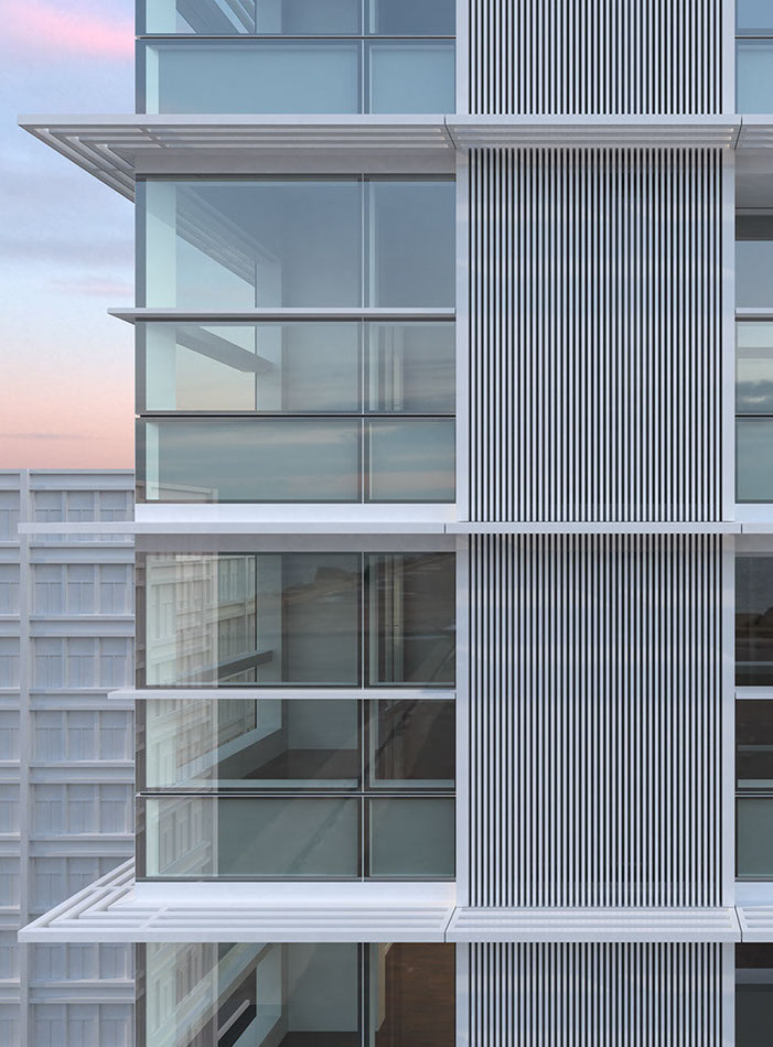 Eight South Lane is located in the vibrant district of Sai Wan. It combines a total of 95 apartments. The design incorporates a grid system that gives the building a sleek, modern and powerful outlook. The aim was to give clarity and hierarchy to the whole design. The materials of the façade are organized in layers and each of those materials express their own characteristics. As we get deeper into the building there is a sense of movement. There is a logical progression from a material that is cold to a material that is warm, from a material that is sleek to a material that is raw and from something industrial to something more natural.