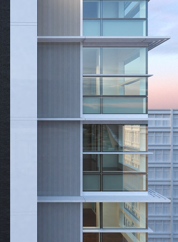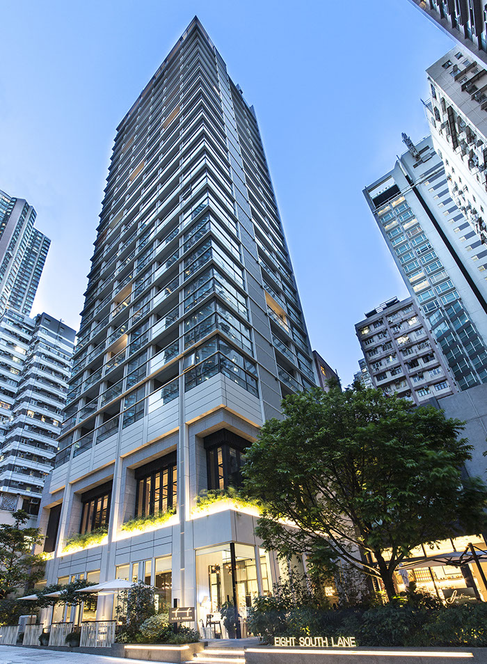 Eight South Lane is located in the vibrant district of Sai Wan. It combines a total of 95 apartments. The design incorporates a grid system that gives the building a sleek, modern and powerful outlook. The aim was to give clarity and hierarchy to the whole design. The materials of the façade are organized in layers and each of those materials express their own characteristics. As we get deeper into the building there is a sense of movement. There is a logical progression from a material that is cold to a material that is warm, from a material that is sleek to a material that is raw and from something industrial to something more natural.