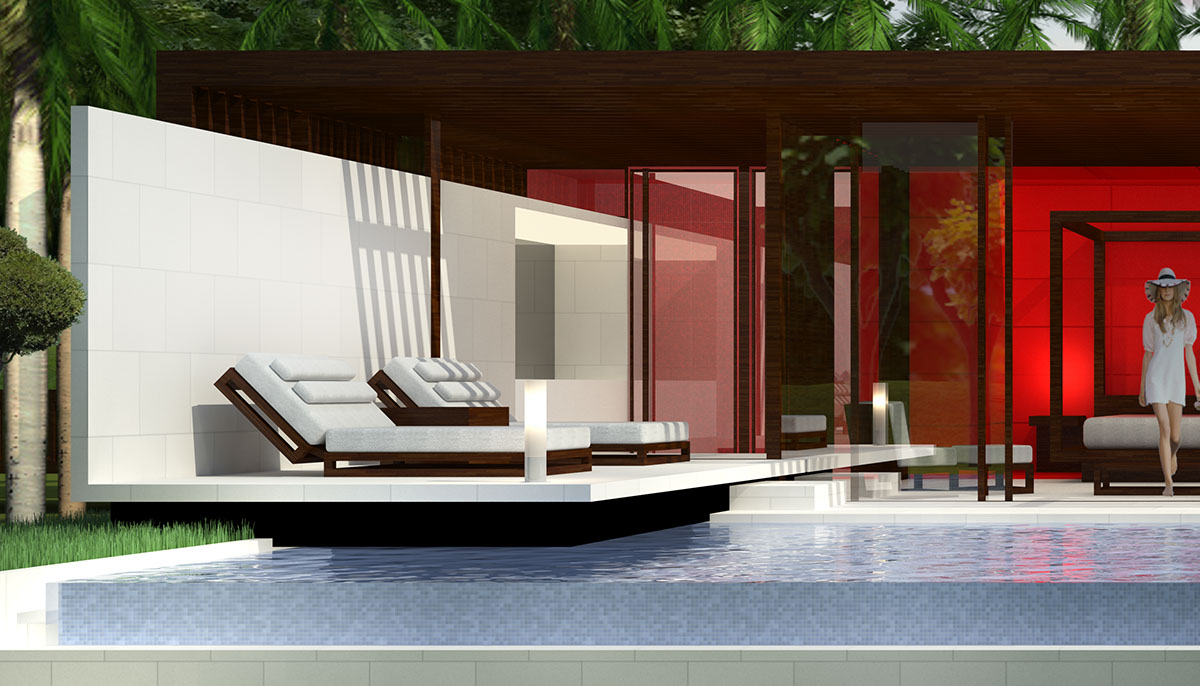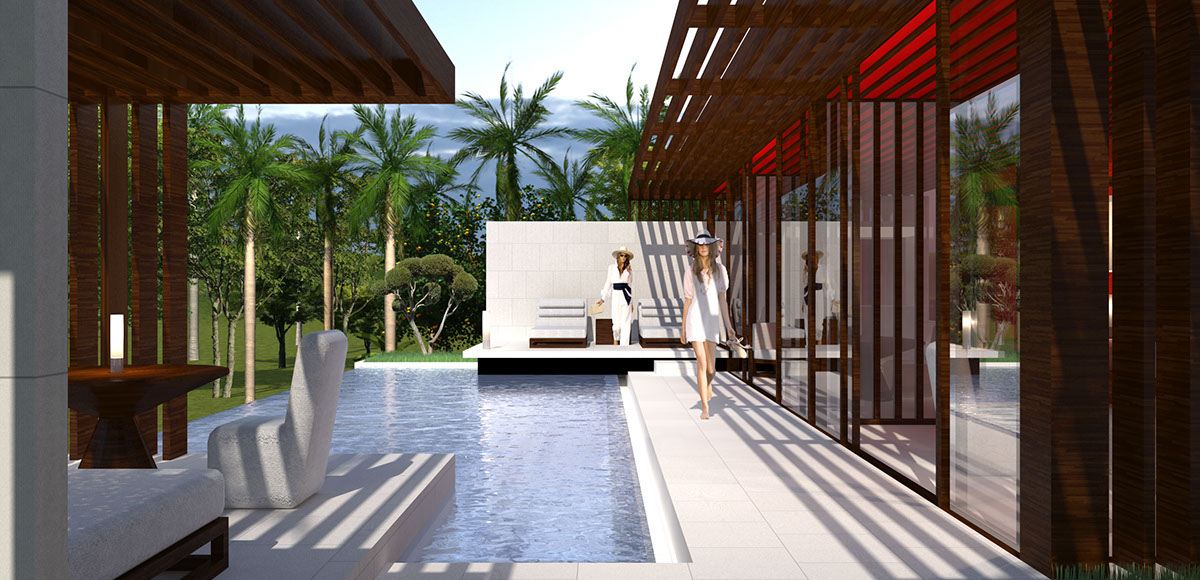 The Shen Xian Wang Resort is set in a beautiful mountainous surrounding. The minimalistic design of the Resort has been inspired by the natural elements of the place: wood, stone and water. Each Villa is organized around a private pool that spatially connects all the different parts of the program: Living room, bedroom, hot-spring bathtub, sun deck and outside living room.