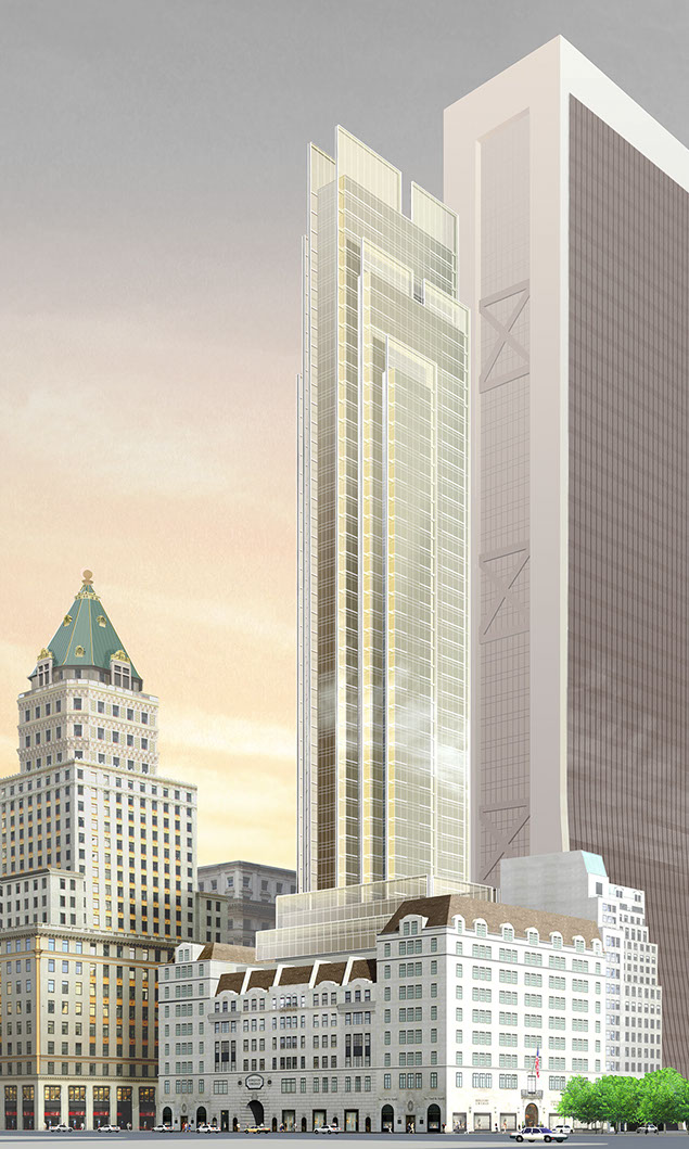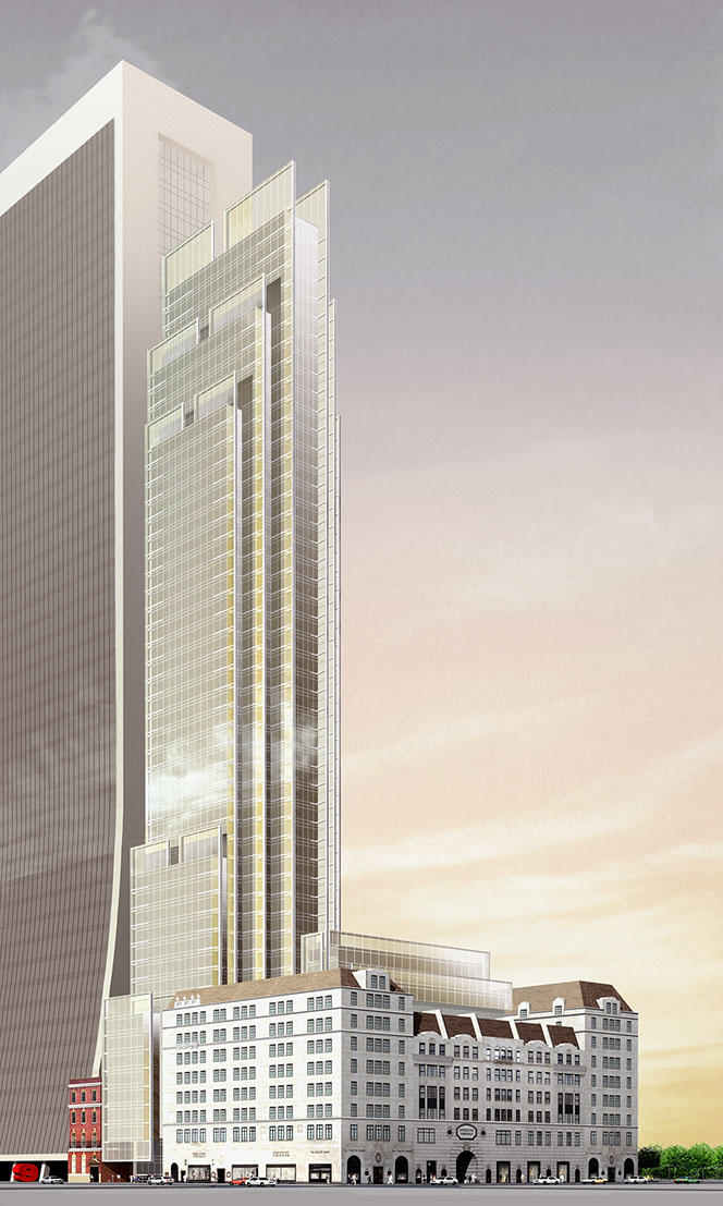 The 3 West 57 residences is a 52 stories mixed-use development located at a prominent shopping intersection in New York. The project has been designed for 8 floors of retail and 37 full-floor luxurious residences and duplexes overlooking Central Park. This signature tower has been designed with a cascading effects of glass planes that articulates this important building block composed of a modernist tower on the left and a neoclassical stone building on the right.